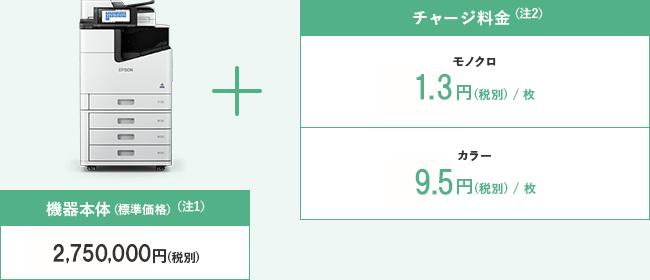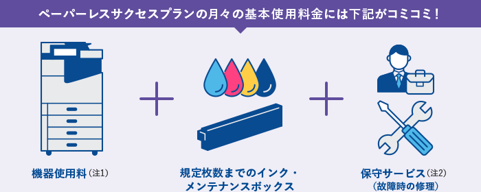 機器本体を購入することなく(注1)、月々の定額費用だけで、規定枚数までプリントし放題。