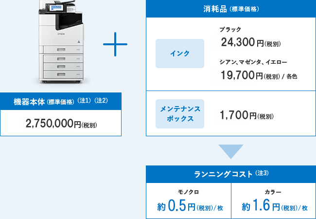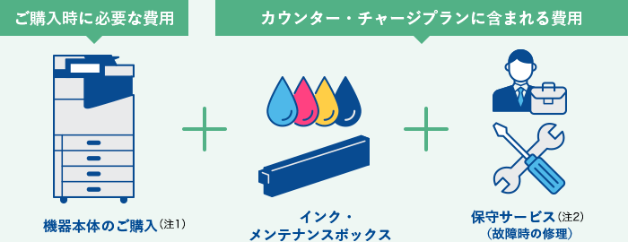 インク、メンテナンスボックス、保守サービス(注2)も含まれています。
