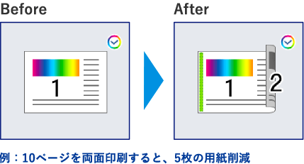 コピーやPCからの印刷時、用紙の両面に印刷することで出力枚数を削減できます。