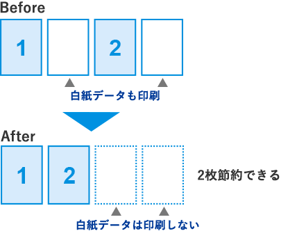 印刷データに白紙があった場合は、白紙ページを省いて出力するので、出力枚数を削減できます。