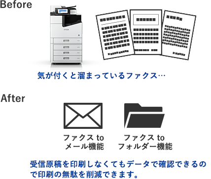 受信したファクス原稿をメールに転送することができます。印刷しなくてもデータで確認することができるので、出力枚数を削減できます。