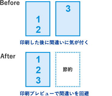 印刷の前に文書のプレビューを表示し印刷内容を確認できるので印刷ミスが低減できます。