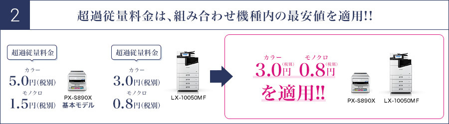 枚数超過した際の超過従量料金にご契約機種内の最安値が適用されます。