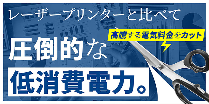 印字プロセスに熱を使わないインクジェットプリンターだからできる低消費電力設計。LM-C6000なら60枚/分(注1)、LM-C400なら40枚/分(注2)という高い生産性と最大190W(注3)という低消費電力を両立しています。