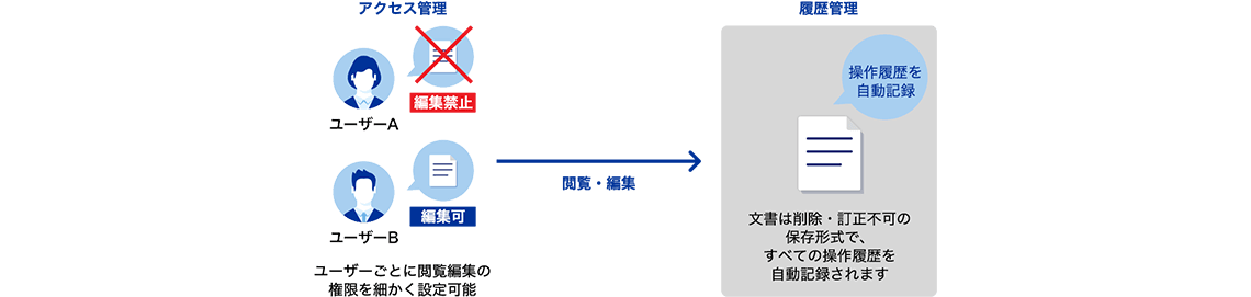 訂正・削除制限機能とアクセス・履歴管理による安全な文書保存