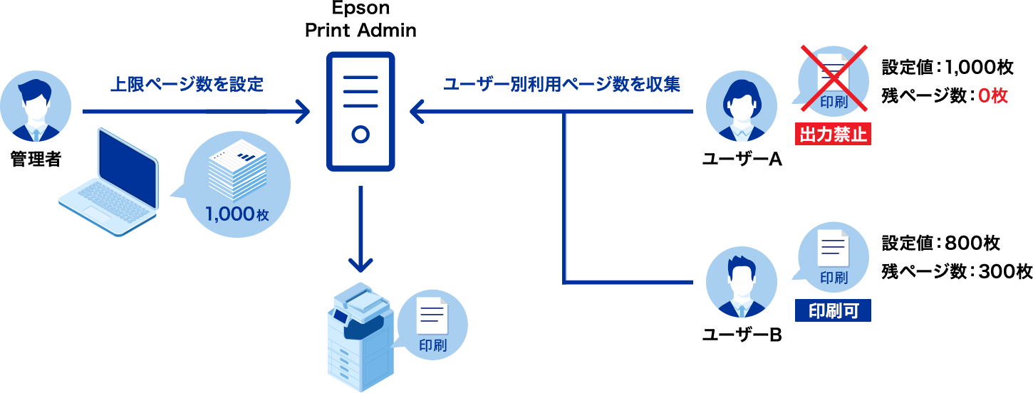 認証印刷オプション「Epson Print Admin」(注1)「ページ数制限」機能でTCO削減