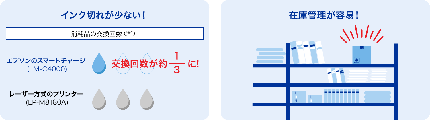 さらに、在庫としておいておくインクの量も最低限で済んで運用を効率化します。