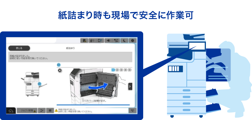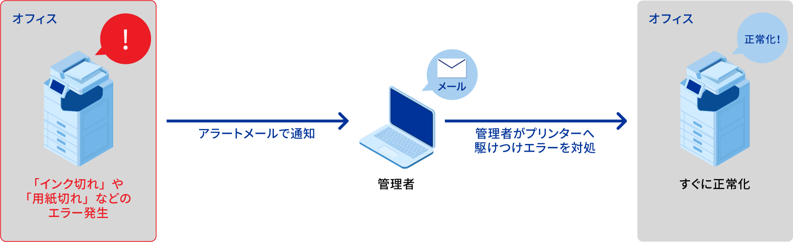 異常が発生したプリンターの元に、管理者がすぐに駆けつけて対処できます。