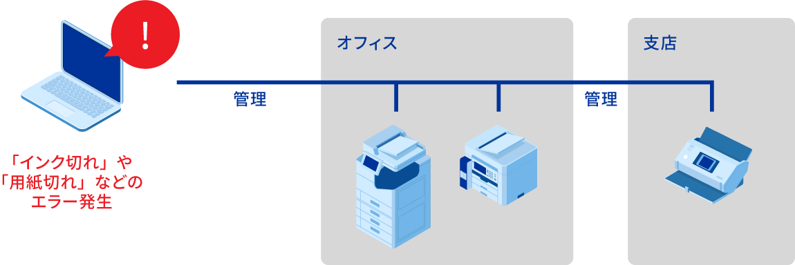リモートで集中的に管理し、オフィス機器の管理負荷を軽減!