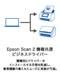 • Epson Scan 2 機種共通ビジネスドライバー 機種別にドライバーをインストールする手間を削減し、複数機種の導入もスムーズに実施が可能。