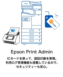 • Epson Print Admin ICカードを使って、認証印刷を実現。利用ログ管理機能も搭載しているので、セキュリティーも安心。
