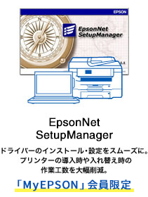 • EpsonNet SetupManager ドライバーのインストール・設定をスムーズに。プリンターの導入時や入れ替え時の作業工数を大幅削減。「MyEPSON」会員限定