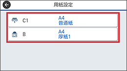 用紙設定画面で、用紙をセットした給紙装置を選択してください。