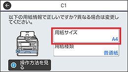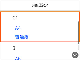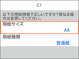 用紙設定画面で[用紙サイズ]を選択し、お使いになる用紙サイズを選択してください。