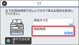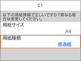 用紙設定画面で[用紙種類]を選択し、お使いになる用紙種類を選択してください。