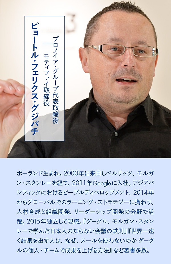 『グーグル、モルガン・スタンレーで学んだ日本人の知らない会議の鉄則』の著者で、組織開発のコンサルティングを行うプロノイア・グループ代表取締役のピョートル・フェリクス・グジバチ氏が、最高のアウトプットを出すための「会議術」を語る。