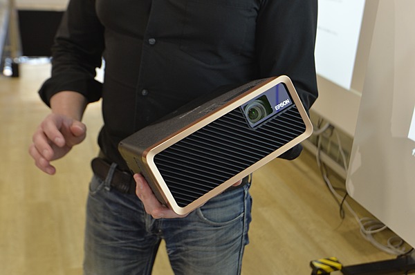 片手で持ち運び可能なエプソンのコンパクトプロジェクターなら、オープンスペースやオフィスの壁に資料を映し、どこでも会議室に変えられる。数人で集まる気軽な会議に、重宝しそうだ。「会議室が空いていなくても、壁に資料を投写できれば、どこでもカジュアルに会議が開けますね」とピョートル氏。