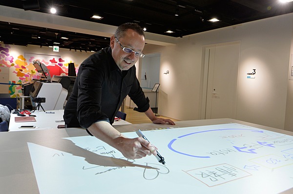 投写するだけでなく書き込めるのは、面白い。たとえば開発中のサービスを投写して、直接改善案を書き込んで議論できれば、分かりやすいですね。