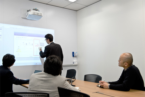 導入後の利用状況だが、ほとんどの会議でプロジェクターを使って資料が投映され、ホワイトボード機能の利便性も徐々に浸透してきているとのこと。インク機能を使って、書き込んだ内容をPCに取り込んでいる社員も出てきている。利用方法についてはイントラネットでマニュアルを公開しているだけで、特に研修などを設けていない。そのため、インタラクティブ機能の使いこなしはこれからと総務部では見ているが、ICT機器に詳しいコンサルタントが多いだけに自分たちで工夫しているようだ。
