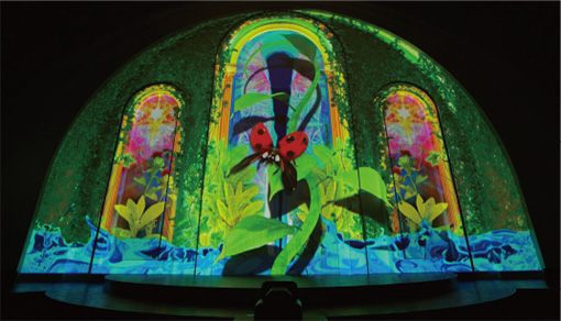 このたび発表した高輝度かつコンパクトなエプソン製プロジェクターと超短焦点のレンズを組み合わせて使用することで、短い投写距離でも大画面かつ十分な明るさのプロジェクションマッピングがせまいスペースでも実施可能になった。エプソン販売はプロジェクションマッピング演出機材の市場拡大を推し進めるべく、新商品内覧会を実際のチャペルで行い、多くの空間演出・内装業界関係者ならびにホテル関係者にプロジェクションマッピングを披露し好評を博した。
