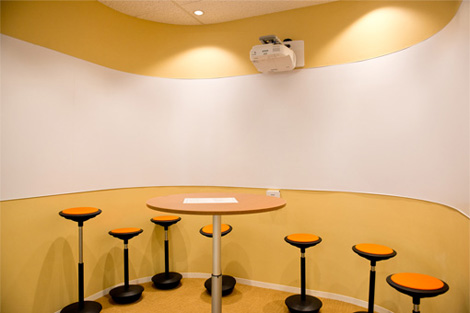 Studio“TOPOS”内には全4室のブレークアウト・ルームがある。マーカーと電子ペンをシームレスに使える他、不安定な椅子に座ることで討議に集中できる。