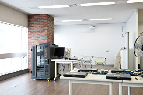 各種ICT機器に触れながら保守教育等を行う「Fureken Lab」。パーテーションで区切られた講義スペースに「EB-1410WT」を計3台設置。