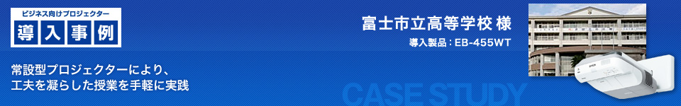 富士市立高校は、名称とカリキュラムの変更に合わせて、よりよい授業を生徒に提供するため、1年生の全教室にエプソンの壁掛け専用・超短焦点プロジェクター「EB-455WT」を導入しました。壁に設置することですぐに使え、優れた操作性により、授業のスムーズな進行を強力にサポートしています。