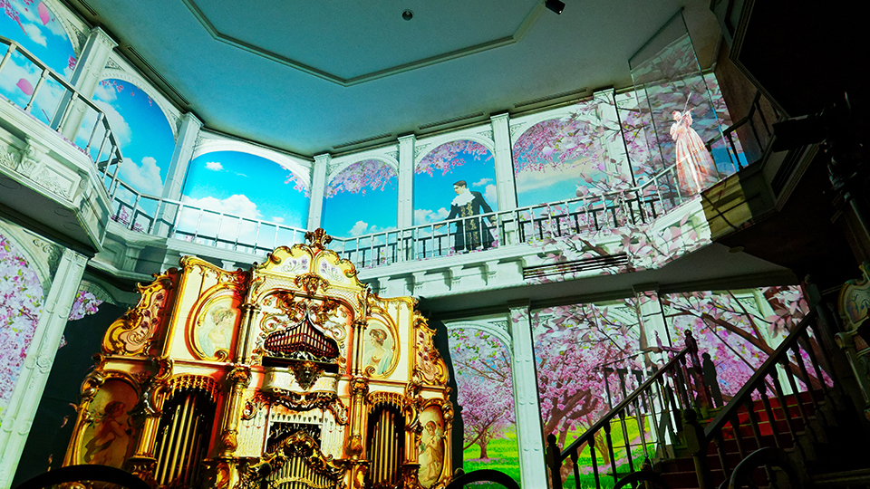 アートファンタジア内のプロジェクションマッピング「美しい映像と音楽が奏でる恋の物語」。