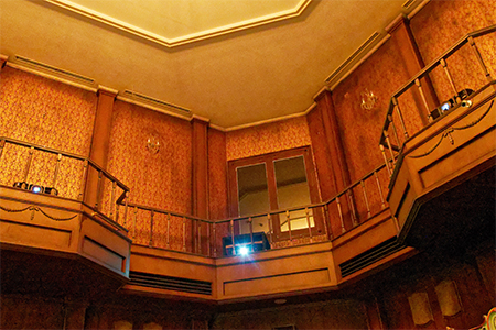 中二階の比較的目立ちにくい位置に3台のEBL1495Uを配置。場の雰囲気を壊すことなく、広い範囲へのプロジェクションマッピングを実現している。