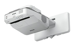 EB-685Wを屋内のテーブルに設置し、リアプロジェクション方式で投写。短焦点レンズを用いることで、省スペースでの設置が可能だ