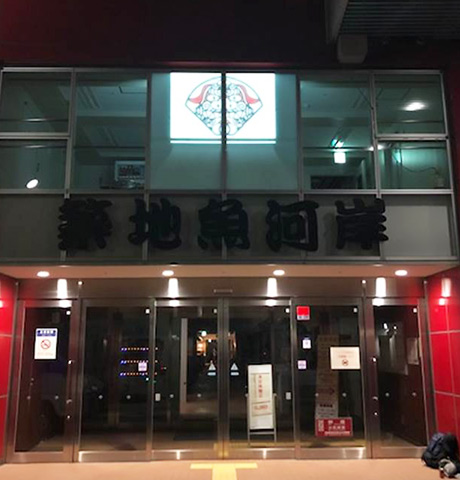 「築地魚河岸」では、ガラス張りの建物の2階部にスクリーンを貼り付けて映像を投写。