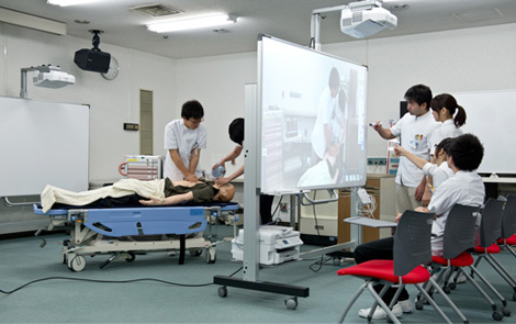 導入からわずかな期間しか経っていないが、動画と資料に直接文字を書き込めることで、デブリーフィングの充実に効果が出ているという。「ホワイトボードひとつで情報を知ることができますから、演習のどこに問題点があったのか、集中して考えることができます。チームとしての動きを振り返る時に、とても役立っています」と石丸氏。また、チーム医療というのは、人の動きだけではなく声のコミュニケーションも重要になるそうで、動画とともに音声も高品質で出力されることにも満足感があるそうだ。看護師である石丸氏も務めているインストラクターの間では、省スペース化できて視線も集まることから、「受講者との距離が近くなって、内容を理解できているかどうかの反応がすぐに把握できるようになりました」。