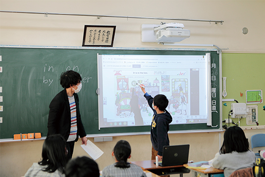 電子黒板は、単語をWEB検索して表示したり、YouTube™などの動画を表示するのによく利用しています。言葉だけでなく映像を目で見て分かることで、授業もとても盛り上がり、子供たちの学習理解度も向上しています。