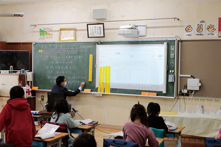 また、電子黒板を導入したことで、教員の事前準備が削減され、特に児童への配布プリントの印刷は格段に減りました。