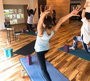 「オンラインレッスン時、スタジオ参加者とオンライン参加の方々に共通する感想として、バーチャルであっても一緒にやっている一体感がある、という意見が多くありました。画面を通して、自分たちのポーズを客観的に確認できるのも好評です。