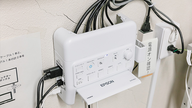 壁掛けプロジェクターを手元で操作でき、他機器との接続・切り替えを容易に