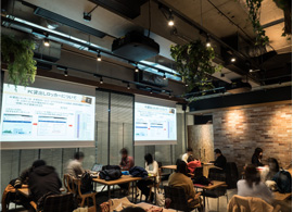 ラウンジは、外光が入り完全に暗くできないが、8000lmと十分な輝度があり、100インチのスクリーンに投写しても視認性が高く色再現も鮮やか。教授や学生の評価も高い。ゼミの発表で使うことも多いが、ゼミ以外の学生とスペースを共用するスタンスを採っている。プロジェクターを使うことで大勢で画面共有できるため、ゼミ以外の学生が興味を持、そうした学生とのコラボレーションも実現。アクティブラーニング的効果を生み出すことができた。4K相当の高画質で将来性も抜群。今後は、教室用のプロジェクターもレーザー光源タイプに切り替えて行けたらと考えている。