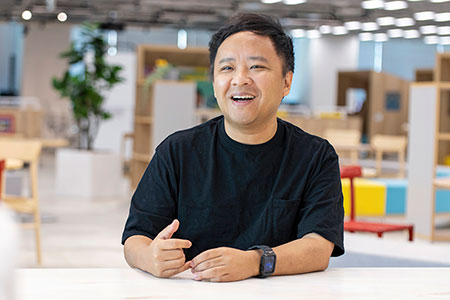 「移転にあたり他社のオフィスを参考にする中で、オフィスサイネージなら情報共有がしやすいと考えました。またコロナ禍でリモートワークがメインになる中、オフィスに来る体験そのものに非日常感を感じてもらい、出社したいと思える環境を作りたかった。そのためにも、等身大ほどの大画面や、3台を組み合わせた大型スクリーンなど映像に没入できるサイズ感が必要でした」