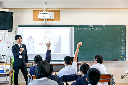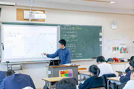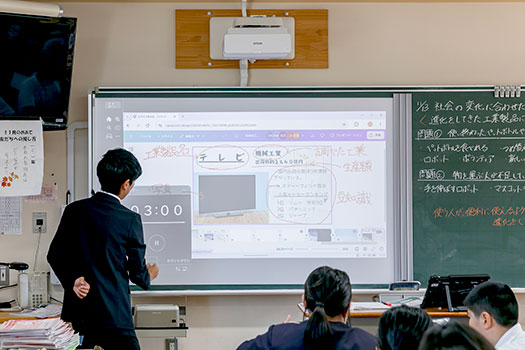 また、プロジェクターによって先生方の教材作りの負担も大幅に軽減されました。PowerPoint® やCANVAなどのアプリを使って短時間で制作でき、デジタルデータであれば劣化しないので、以前作った資料もすぐに映し出せ、継続して利用することもできます。今は、これまでに制作したスライド教材をデータ化して先生方で共有化していけるよう、その仕組みづくりと活動を広めているところです。