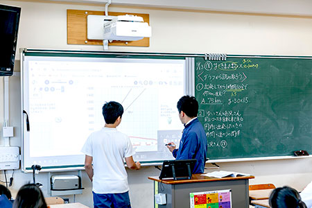 エプソンの壁掛型電子黒板機能付プロジェクターを使い続ける理由は、操作性が良く、先生方が使い馴れていたのが最大の理由です。タブレットPCからEpson iProjectionを使って無線LAN接続でプロジェクターへ投写でき、電子ペンの機能もフル活用していたので、せっかく馴れていたのを、他社の機器に変えてしまうと授業のやり方そのものを変えなければなりません。そこで、馴れていて今までと操作感が変わらず、基本性能もアップしたエプソンの後継機を選びました。前機種で使用していた取付金具がそのまま使えて、トータルで更新費用を抑えることができた点もメリットでした。