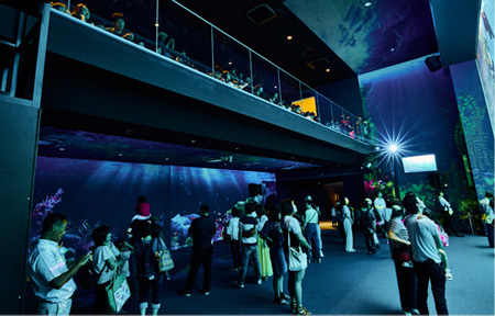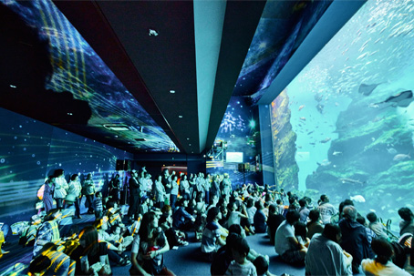 2017年7月15日から展示が一部リニューアルされ、大水槽を中心とした360°大パノラマプロジェクションマッピングを「いのちきらめくうみ」、「クラゲのいやし」コーナー、「コミュニケーションウォール」コーナーにて実施。「映像」×「音」×「生きもの」が織りなす360°大迫力の世界を表現し、人気を博している。