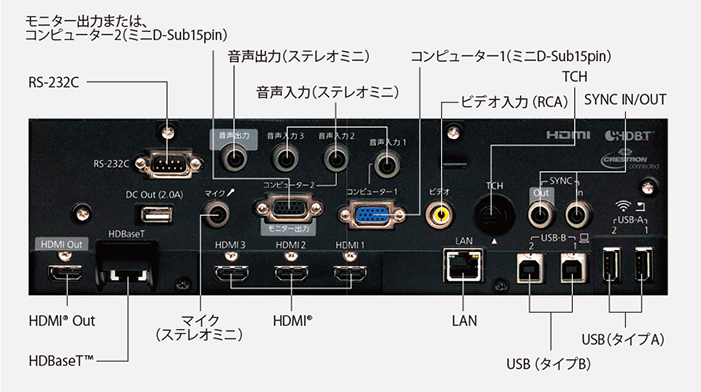 | USB端子タイプB(USBディスプレイ用(注8))、プロジェクター制御用) |