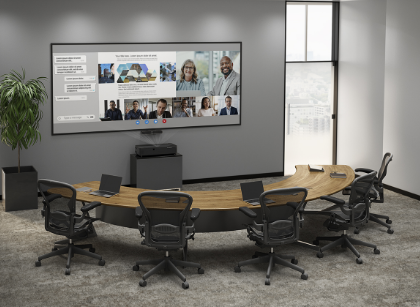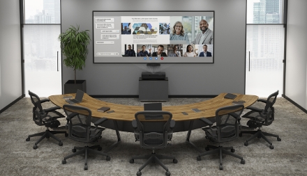 壁掛けや天吊り設置のみならず、施工のいらない机上設置にも対応。