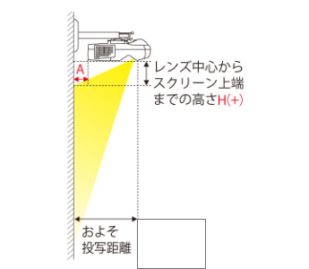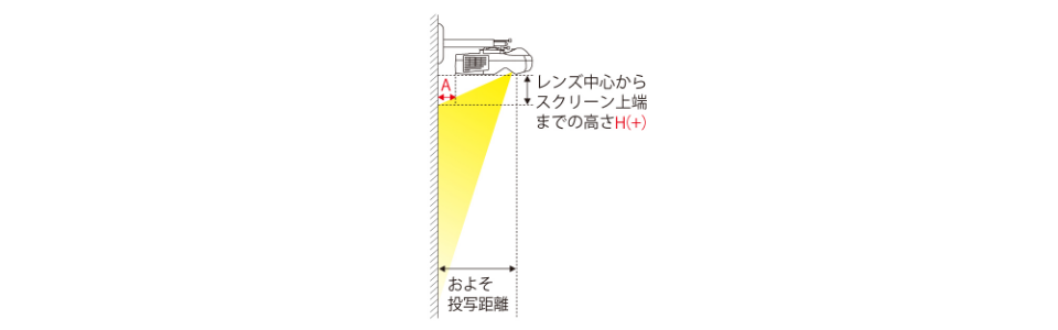 | スクリーンサイズ(16:9) | A | H | 投写距離 | |