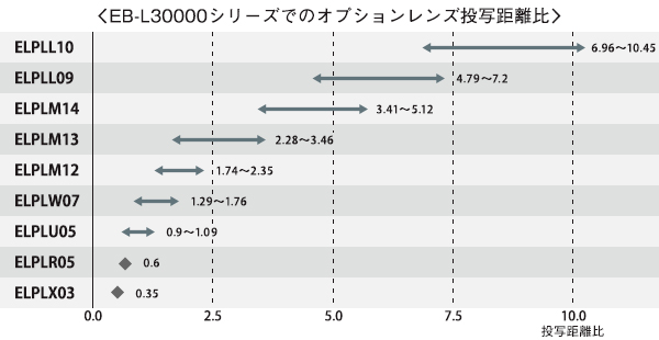 超短焦点~長焦点まで、豊富な交換用レンズをご用意。さらに幅広い設置環境に対応します。