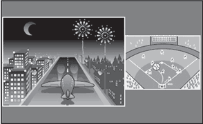 2つの映像を同時に投写できます。同じサイズで投写することも、片方を拡大することもできるのでメイン映像を視聴しつつ、サブ映像を確認するなどの利用ができます。