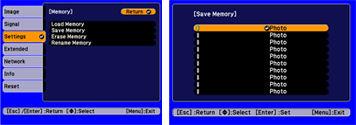 詳細なセッティングをメモリーできます。それら設定情報をメニュー画面から変更可能。