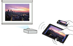 Epson iProjectionを使うと、PCやスマートフォン、タブレットから、写真・ドキュメント・Webサイトなどをワイヤレス投写できます。PCやスマートフォン、タブレットをエプソンのプロジェクターと接続して、簡単にプレゼンテーションや写真・書類の投写ができます。