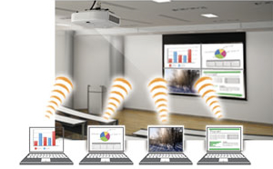 ネットワークにつながった最大50台のPCから任意のPC画面を最大4台までプロジェクター画面に分割して表示することが可能。プロジェクターの活用度が大きく広がります。