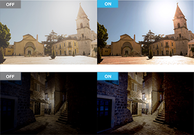ガンマレベルを自動的に調整して適切なコントラストで投影するシーン適応ガンマ補正。シーンに応じて階調表現を調整し、諧調潰れが抑制されたメリハリのある映像にします。